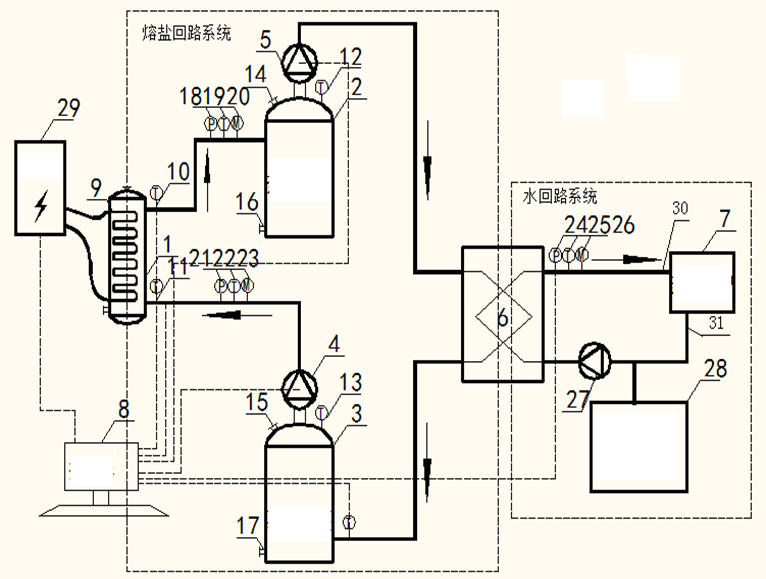 ? 以我公司參與某廠工業制熱改造為例進行說明。該企業流水線分別需要200℃和160℃的熱環境,采用燃氣鍋爐和電加熱設備進行加熱,成本居高。經過改造,在夜間,利用價格優惠的低谷電加熱熔鹽蓄熱,白天用熱時將高溫熔鹽抽出,首先流經固化爐加熱空氣產生200度的熱環境,然后流經烘干爐產生160度的熱環境,最后流經熔鹽-水換熱器加熱水用于供暖,達到了能源的梯級利用。節約費用至少達到60%,并具有良好的投資效益。